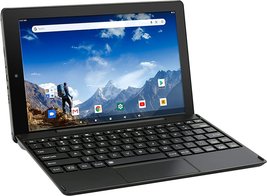 The Ventura 10 Android Tablet boasts a 10.1-inch HD touchscreen display with a resolution of 1280 x 800 pixels. It runs on the latest Android 10 operating system, providing access to the vast selection of apps available on the Google Play store. The tablet comes equipped with a detachable keyboard, allowing for a seamless transition from tablet to laptop mode.
